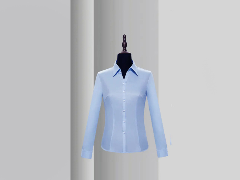 女長袖V領襯衫定做
